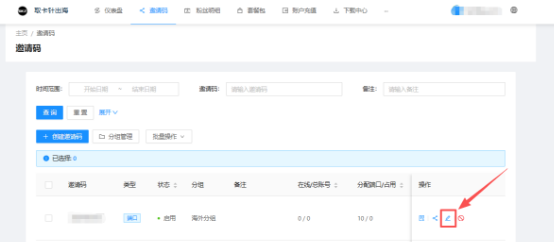 调整之后,找到需要使用的邀请码【编辑】调整数量,