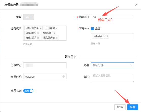 端口增加数量到个人后台账户,不可增加到单个邀请码数量!