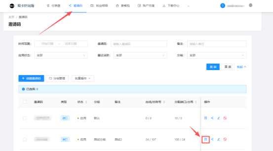 查看【邀请码/工单】所登录账号以及粉丝数据!