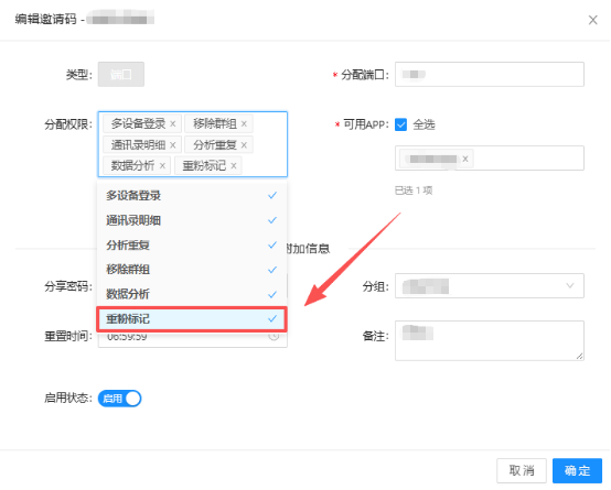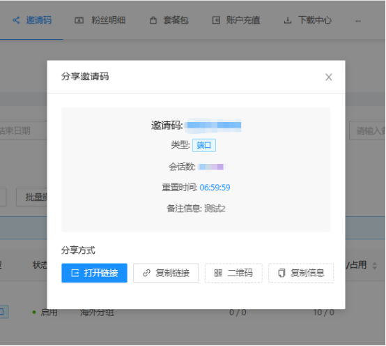 创建【端口邀请码】时如勾选【重粉标记】,分享的工单可显示详细信息