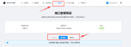 充值之后,点击上方--【购买套餐】--进行端口购买!!!