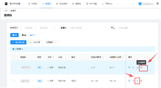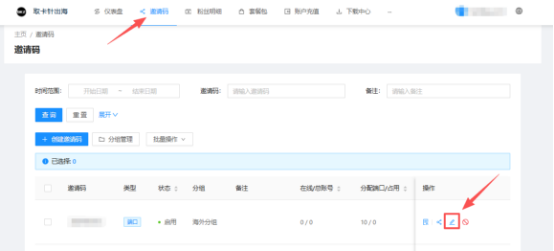 调整之后,找到需要使用的邀请码【编辑】调整数量,