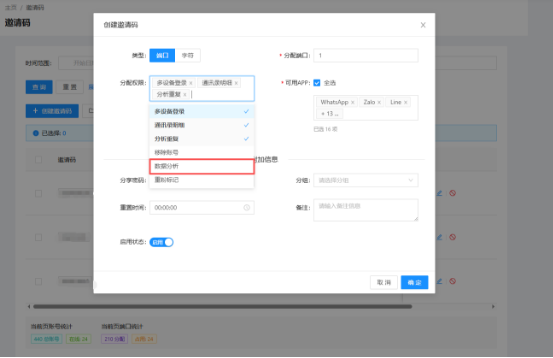 1: 进入后台,邀请码后面【编辑】重新勾选【数据分析】,保存
