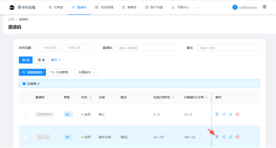 2: 邀请码点击【禁用】,等待登录账号的客户端全部掉线退出,再次启用邀请码