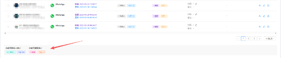 工单页面左下方也可以看到当前页联系人统计和当前页重复统计。